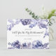 Elegantes rosas color agua morado enmarcan esta moda serás mi invitación a la dama de honor con hermosas flores violetas y hojas botánicas creando un borde superior e inferior. Esta magnífica invitación a una fiesta de novias con flores y violeta se acentúa con una encantadora lavanda para que coincida con esta encantadora colección de bodas.