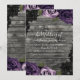 Invitación Rosas Purpura Profundo Madera Rústica Encaje Negro