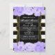 Invitación Rosas púrpura rayas negras y ducha de novia dorada