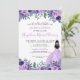 Invitación a Quinceanera Púrpura Floral Rosa Tiara Watercolor. Una adorable acuarela de rosas morados y flores mezcladas con hojas verdes y follaje, es el escenario de esta temática fiesta de Quinceañera. Un aspecto sencillo pero caprichoso, con una variedad de tonos violetas. Una mezcla de tipos de letra serif clásicos y una hermosa tipografía de guiones hacen que esto sea elegante y divertido. Una princesa espumosa morada tiara se esparce por encima de su cabeza, y por detrás, así como un adorable chica con un vestido espumoso morado que se adapta a una princesa. Puede cambiar todos los colores del tipo de letra para hacerlo más colorido o vibrante si lo desea. También puede cambiar el fondo y la parte posterior del color de la invitación a lo que desee. Invitación a Quinceanera Floral Morada Acuarela Con Rosas Púrpuras Princesa Purpurina Vestido Tiara. Disponible en forma de invitación impresa, o como una invitación digital descargable que puede enviar por correo electrónico o que ha impreso localmente.