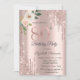 Invitación Rosas Purpurina Drips Rosa Oro 80 cumpleaños