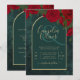 Invitación Rosas Rojas Doradas de Forest Green Boda de Invier