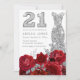 Invitación de fiesta de cumpleaños 21ª con Roses rojos y bata plateada Véase colección coincidente en Nest Store y Nest