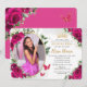 Invitación Rosas Rosa Caliente Fucsia Floral Quinceañera Fot