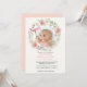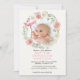 Celebra el bautismo infantil de tu dulce bebé con una encantadora invitación de keepsake que muestra su foto rodeada de una delicada coraza floral color agua y rosa de marfil con follaje. Derechos de autor de arte, Audrey Jeanne Roberts.