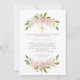 Estas encantadoras y modernas invitaciones florales de la primera Comunión sagrada cuentan con hermosos rosas de color rosa rubor en sprays con muchas hojas verdes. Una cruz de oro falso se sienta en la parte superior, y la parte trasera de la invitación es de un color rosa a juego.