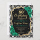 80.ª Invitación a la fiesta de cumpleaños. Elegante diseño verde esmeralda floral con rosas y oro purpurina. Presenta un patrón de damasco blanco y negro y fuente de guión. Perfecto para una elegante celebración del cumpleaños de las mujeres. ¡Se puede personalizar para cualquier edad! Invitaciones Zazzle impresas o una plantilla imprimible digital de descarga instantánea.