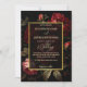 Flores rojas rojas rojas de color morena elegante crimón negro oscuro todo en una plantilla editable boda invitación descarga digital instantánea, rosas de peonía vintage sobre la invitación a la boda de fondo negro oscuro con detalles del boda y código QR RSVP al dorso
