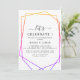 Esta invitación de celebración geométrica de acuarela rose gold es perfecta para una elegante fiesta de compromiso, fiesta posterior a la boda, jubilación, graduación o cualquier evento feliz. El diseño caprichoso presenta acuarela rosa suave neutral con hermosas formas geométricas de lámina de rose gold falsa y brillo.