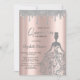 Invitación Rose Gold,Glitter Dress Drips Silver Quinceanera