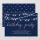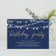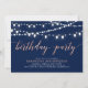 Celebra tu día especial con esta elegante plantilla de invitación para fiesta de cumpleaños moderna. Este diseño presenta hermosas luces de cuerda con un tema de color rosa dorado y azul marino.