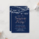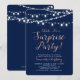 Celebra un día especial con esta invitación de cumpleaños sorpresa moderna. Este diseño presenta tipografía de guión elegante con una textura de rose gold y cuerdas de luz. Perfecto para una fiesta en el jardín, fiesta en el patio trasero o fiesta con tema de colores dorado y azul marino.