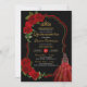 Invitación Roses Rojos Negro y Dorado Elegante Vestido Quince