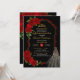 Invitación Roses Rojos Negro y Dorado Elegante Vestido Quince