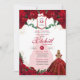 Invitación a la quinceañera en español | Roses rojos con acento dorado | Todo El Texto Es Totalmente Personalizable Para Su Ocasión Especial. | También disponible en otras opciones con Chicas con diferentes colores y complejidades de cabello o sin chicas en absoluto | Artículos coincidentes como Tarjetas de agradecimiento, Tarjetas RSVP, Rótulos y más en la Tienda Mis15Anos!