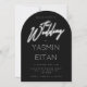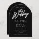 Haz que tu boda te sorprenda con estas invitaciones geniales de JessicaAmber. Esta tarjeta contiene letras de neón blanco y el nombre del par de casados en luces. El resplandor se destaca sobre un fondo negro. Las letras blancas modernas muestran los detalles del boda, incluyendo la ubicación, la fecha y la hora. ¡Genial para un boda de Las Vegas! Buscar la suite coincidente en mi colección. ・・・ Para más suites bodas, visite mi tienda Zazzle.com/EventsByJessicaAmber ・・ Para órdenes de personalizados, envíeme un mensaje a Zazzle