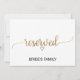 Este sencillo signo "reservado" de boda de caligrafía dorada es perfecto para un boda de moda. El diseño es de doble cara (huellas en ambos lados) y tiene una tipografía de Relieve metalizado de oro falso y un bonito corazón dorado. Utilice estas tarjetas para reservar sillas o mesas en la ceremonia o recepción de su boda. Nota: Este diseño no tiene Relieve metalizado oro real. Es un gráfico de alta calidad hecho para parecer un Relieve metalizado dorado.