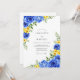 Lush bouquets of vibrant royal blue roses and delicate yellow blossoms create an enchanting display. Hints of verdant foliage add depth to this romantic, painterly floral arrangement. The luxurious color palette evokes a feeling of sophisticated charm.