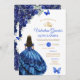 Girl Royal Blue Dress Quinceañera 15 Anos Flowers Gold Butterfly Invitation