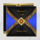 Invitación Royal Blue Gold Black Leopard Jewel 40 cumpleaños