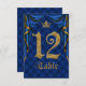 Invitación Royal Blue Gold Crown Mesa Número de Boda 12