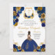 Invitación Royal Blue & Gold Floral Elegante Quinceañera