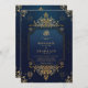 Invitación a la Boda Musulmana con Floral de oro azul oscuro real QR Code Esta exquisita invitación a la boda, bañada por un tono azul oscuro y real, está adornada con delicados motivos florales dorados que exudan elegancia y opulencia. La caligrafía árabe "Bismillah" honra con gracia la parte superior, invocando bendiciones divinas a la pareja. La invitación combina perfectamente la tradición con la modernidad, con un código QR en la parte trasera para obtener RSVPs en línea y acceso a detalles de bodas adicionales. La elegante tipografía garantiza una experiencia visual atractiva y fácil de leer, lo que hace de esta invitación una elección perfecta para un boda musulmán que celebra tanto el patrimonio como el estilo contemporáneo.