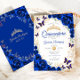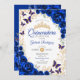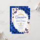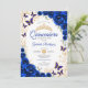Royal blue, gold and white Quinceanera celebration invitation. Features, script font, gold butterflies, watercolor roses and tiara. Perfect for an elegant princess style glam celebration. Personalize with your own details. Printed Zazzle invitations or instant download digital printable template.