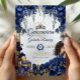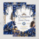 Invitación Royal Blue Golden Tiara Floral Quinceañera