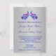Elegante invitación de boda real azul pavo real con fondo metálico plateado. Este diseño se originó con un diseño original de pavo real acuático hecho a mano que fue modificado gráficamente para representar joyas de pavo real. Las joyas brillan en magníficos colores de oro azul real, púrpura, verde azulado acuático y blanco sobre un sustrato de plata. El lado inverso es el fondo del Relieve metalizado plateado coincidente con toda la información del boda. Fácilmente personalizar para su evento, agregando los detalles en el estilo de tipo de letra o la redacción de su elección en los campos de plantilla proporcionados. (NOTA: se trata de una invitación impresa plana. No se utilizan joyas, purpurinas de plata, Relieve metalizado metálico o tinta.