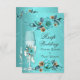 Invitación RSVP Boda Rosas Flores Champán Azul Teal