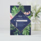 Invitación RSVP de boda azul marino acuarela de palma tropica