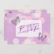 Tarjetas de RSVP de boda de mariposas púrpura y lavanda para recepción de cena de boda.