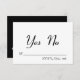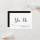Un dramático "XO" de plata decora la parte posterior de esta elegante RSVP negra y plateada. Este estilo se ve realzado con una simple respuesta Sí / No para marcar con un círculo. Desplácese hacia abajo para ver los artículos coordinados en esta nueva y trendy colección.
