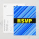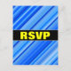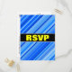 Este diseño de postales RSVP presenta un patrón de rayas o líneas coloreadas en varios tonos azules. También incluye un formulario RSVP personalizado en la parte posterior, junto con una dirección personalizado a la que se enviarían las tarjetas RSVP completadas.