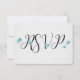 fancy RSVP negro con flores turquesas en fondo blanco de lino suave