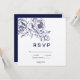 Línea artística de peonía con tema de color azul marino perfecto para tu boda o compromiso