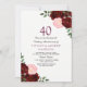 Invitación Aniversario de Bodas 40 Rosa Rojo Borgoña Floral