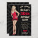 Sorprenda a sus huéspedes con esta fiesta de cumpleaños atractiva invitan a ofrecer a una mujer joven preciosa con tipografía juguetona contra un fondo negro del starburst. Añada simplemente sus detalles del acontecimiento en esta plantilla fácil de usar para hacerle una única invitación.