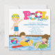 Comience su fiesta en la piscina de la derecha con nuestra invitación linda estupenda de la fiesta de cumpleaños del muchacho de la fiesta en la piscina de la nadada nuestras características únicas de la invitación del fiesta de la playa de la piscina del verano un muchacho rubio lindo a llevar un bañador que se coloca al borde de una piscina con una natación del chica y del muchacho en la piscina. Apoye de los coordenadas de la invitación con el frente y tiene tallarines de la nadada y una pelota de playa. También disponible en un muchacho trigueno y para los chicas en nuestra tienda. Invitación perfecta de la fiesta en la piscina para un fiesta adolescente y del tween de la natación. ¡Apenas personalice con su información y usted es todo fija para ir! Artículos a juego incluyendo los sellos del cumpleaños, pegatinas del favor, gracias le carda y agradece que los pegatinas están también disponibles en nuestra tienda. ilustraciones del ©JW de www.celebrateitinvites.com