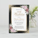 Invitación Rubor Floral Black Gold Confetti 50 cumpleaños