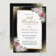 Elegante invitación de cumpleaños florido rosa y rosa, con flores rosas y verdes, que enmarcan los detalles de cumpleaños dentro de un marco dorado adornado con confeti dorado. Invitación de cumpleaños floral de Rubor. Invitación de Rubor y de oro para el cumpleaños. Invitación de cumpleaños rosa y dorado. Invitación de cumpleaños rosada. Invitación de cumpleaños floral de oro y negro. Personalice fácilmente esta plantilla a cualquier fiesta de cumpleaños.