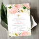 Invitación Rubor floral blanca rosa Primera Comunión Santa