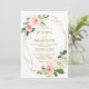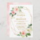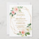 Elegante invitación de matrimonio botánico floral de primavera rosa / melocotón Rubor con un ramo de rosas de acuarela pastel suave, peonías e hidrangeas en tonos rosas, melocotón y crema con hojas botánicas verdes y hojas de eucalipto y marco geométrico purpurina de oro. Una moderna elección de diseño que es perfecta para bodas de primavera y verano.Encuentre más diseños y variaciones de mi tienda "blissweddingpaperie". Y no dudes en ponerte en contacto conmigo para seguir personalizando o coincidiendo con elementos