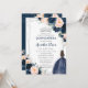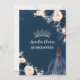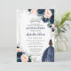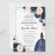 Invitación Rubor Navy Blue Floral Princesa Plata Quinceañera