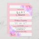 Elegantes y únicas tarjetas de invitación a la ducha para bebés. Fondo Rubor de rayas rosadas y blancas (se puede cambiar el color - usar botón personalizar) con flores y diamante falso. Perfecto para ese elegante fiesta. Coincide con cualquier tema de ducha. Plantillas personalizadas para que pueda editar el tipo de letra, color y tamaño del texto. ¡Consigue que los pegatinas de la ducha de novia sean iguales!