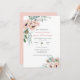 Flores acuáticas de espías rosadas y marfil, peonías rosas, hojas de eucalipto y otras invitaciones de bodas verdes. La parte trasera de la tarjeta es rosa rubor. *** NOTA *** Si necesita ayuda con esta invitación o para solicitudes de personalizado, necesita mi ayuda, no coloque esta mercancía en su carrito. En su lugar, envíeme su solicitud por correo electrónico a shutterbug600@yahoo.com. Zazzle se encarga de todas las tareas de envío e impresión y las preguntas relativas a su pedido deben dirigirse a Zazzle support: https://www.zazzle.com/about/ask. No tengo acceso a tu cuenta y no puedo hacer cambios una vez que has hecho tu pedido. No tengo acceso a tu cuenta y no puedo hacer cambios una vez que has hecho tu pedido. Además, CHAT no está en vivo, pero respondo en 24 horas.