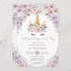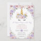 Invitación Rubor Purple White Floral Unicornio 12º cumpleaños