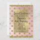 Invitación Rubor Rosa y Dorado Brillo Lunares Dulces 16 Dieci