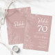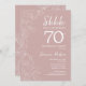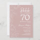 Invitación de cumpleaños número 70 de Rubor color rosa y blanco. El diseño femenino moderno presenta acentos botánicos y tipografía. Elegante tarjeta de invitación floral perfecta para una elegante celebración de cumpleaños sorpresa femenina. Invitaciones Zazzle impresas o una plantilla imprimible digital de descarga instantánea.